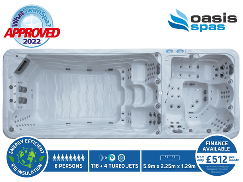 Oasis Swim Spas are built by one of the world’s largest international hot tub and swim spa manufacturers who distribute products in 40 countries around the world. Oasis Spas are built to last with premium components and the thickest shells on the market. The Power Saver Technology and R18 multi-layer insulation system will save you thousands over the life of your hot tub or swim spa and the Easy-Care Technology makes maintenance simple.